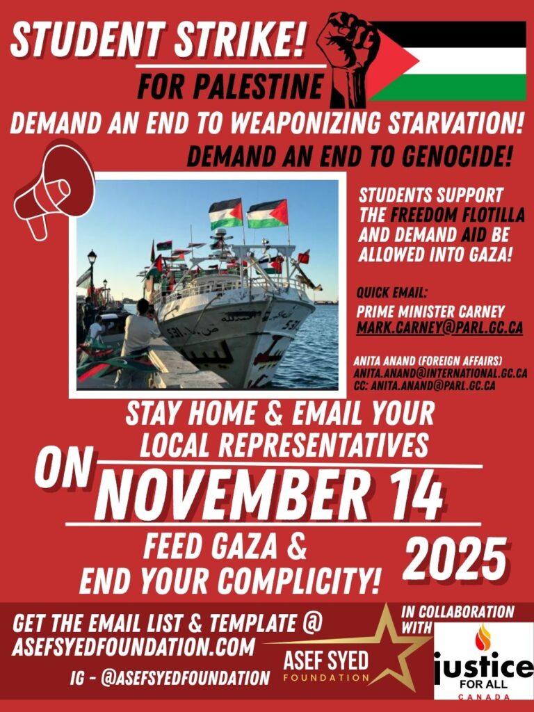 On November 14, 2025, students across Canada are striking — not for ourselves, but for the children of Gaza.